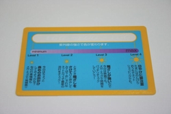 UVチェッカー(紫外線チェックシート)はレベル1〜レベル4までの紫外線量を測定します。レベル1〜2 時々陽射しを避けて!、レベル3陽射しが強いです!レベル4やけど注意!といった警告がUVチェックゲージと共に確認できます。