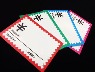 貴店だけのオリジナルプライスカードを作成いたします。お店の環境デザインから価格表示の種類、方法等、印刷する内容全て店舗オリジナルで作成が可能です。消費税率変更に合わせての大LOTも小規模店舗向けの小LOTも、どんなLOTでも対応可能です。