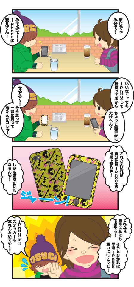 iPhone保護シールの特徴を4コマ漫画で見る