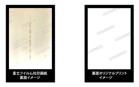 写真の風合いを高める裏面は使用する印画紙の富士フイルム社ロゴはもちろん、オリジナルデザインとしてイベントやグループ名等の印刷も対応です。また無地も対応可能です。